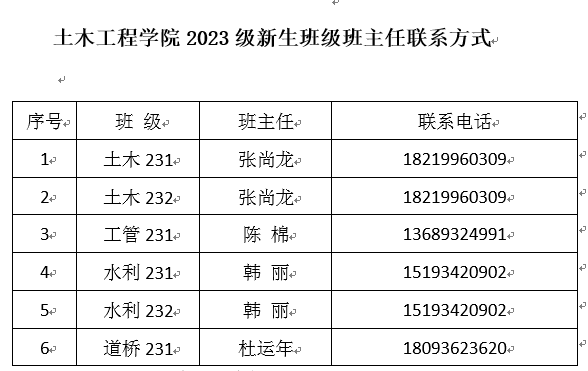 2023级新生班级班主任联系方式