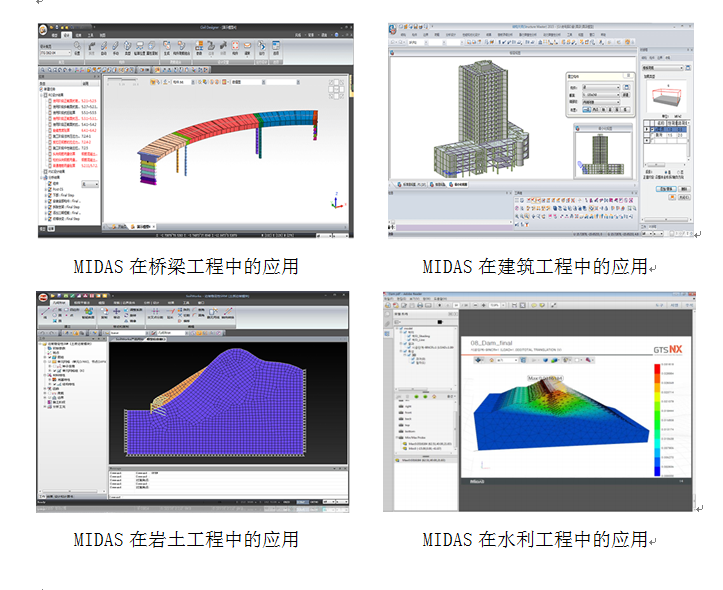 MIDAS(迈达斯)为结构设计有限元分析软件,有桥梁工程、建筑工程、岩土工程、仿真等四大类。主要在各类桥梁、大体积混凝土的水化热分析、地下结构、隧道、工业建筑、大坝等建筑工程的设计、分析、计算应用并优化设计。