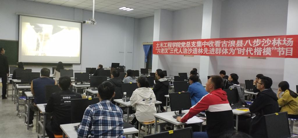 3月29日晚,公司党总支分教工支部、员工支部两个场地集中收看了中央电视台直播的古浪县八步沙林场“六老汉”三代人治沙造林先进事迹。