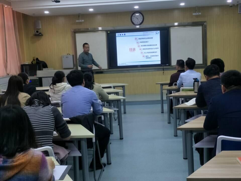 余宏远教师的报告主要围绕工程测量课程进修学习心得、GIS在公司虚拟校园建设项目中应用研究、航空摄影测绘基础及其在工程中应用等问题作了汇报。