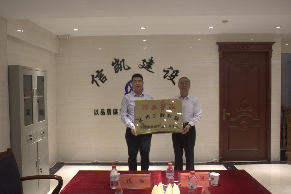 2019年4月24日,公司党总支书记、副经理田建良等一行五人赴张掖市甘肃广川工程建设有限公司、甘肃信凯工程建设有限责任公司,签订“实践教学与创业创新基地合作协议”并举行了挂牌仪式。