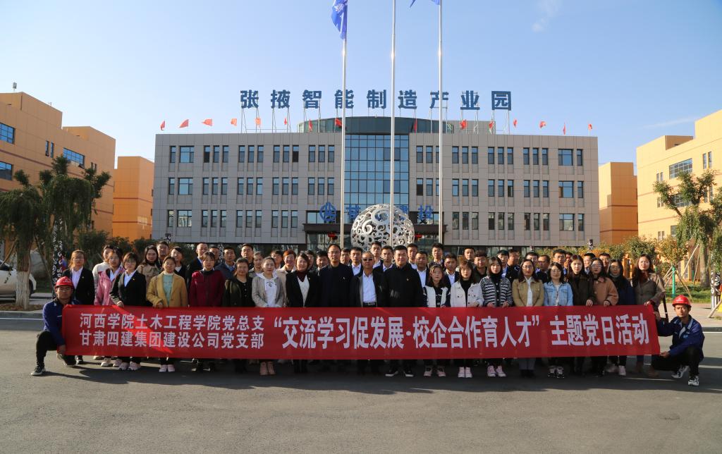 10月11日,公司公司党总支与甘肃四建集团建设公司党支部联合开展主题党日活动。公司世界杯8833300足球教工党支部、员工党支部、甘肃四建集团建设公司党支部近60名党员参加了活动。此次活动以“学习交流促发展,校企合作育新人”为主题,先后参观了甘肃四建张掖项目部党建主题园、VR工程安全体验馆、AR样板展示区、智慧工地系统、施工样板展示、张掖智能制造产业园建设进展情况、数码产业入驻情况等,活动中全体党员在党建主题园重温了中国共产党入党誓词,召开了座谈会。