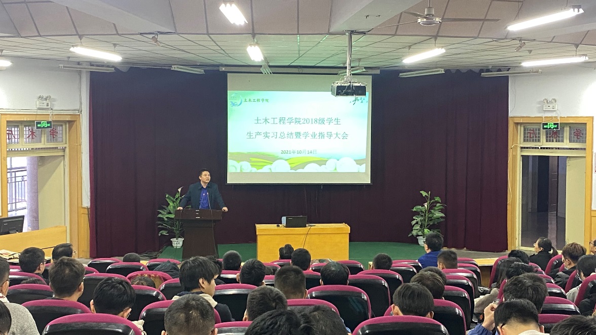 2021年10月14日下午,世界杯8833300足球在公司学术二厅召开2018级员工生产实习总结暨学业指导大会。土木工程、农业水利工程、工程管理三个本科专业员工,公司领导、综合办公室、教研室主任及全体教师近200多人生参加了会议。会议由副经理肖让主持。