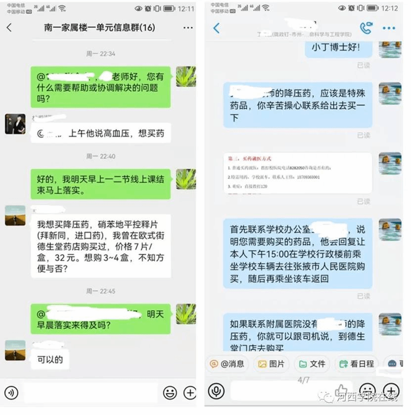 在家属区楼长岗位上担当作为。公司负责人还具体负责南区家属区1号楼1单元住户疫情防控工作。因南区1号家属楼外租人员多,人员构成相对复杂,工作起来困难较大,就一单元来说,有教职工,外聘教授,毕业生,家属以及食堂工作人员30人,但为了全校的疫情防控大局,他们千方百计,确保不落一户,不漏一人。尽心尽力的做好每一件事,服务每一个人的基本需求。外聘教授张某某老师高压药没有了,他用药又是专用药物。通过对接张教授,了解基本情况和药物的具体信息后,积极与聘请公司联系,安排专人按照公司外出程序,启用应急车辆,在最短时间内联系购买到外聘教授的用药;2号中午,考研租住户3名毕业生储备食物没有了,积极联系申请安稳部,解决好三位同学基本食物供给的问题……