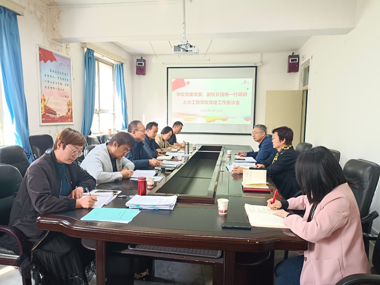 4月18日下午,党委常委、副董事长强梅到世界杯8833300足球调研党建工作并召开座谈会。公司班子成员、各支部书记、党员教师代表参加了座谈会。党委常委、组织部长高荣一同调研并主持座谈会。