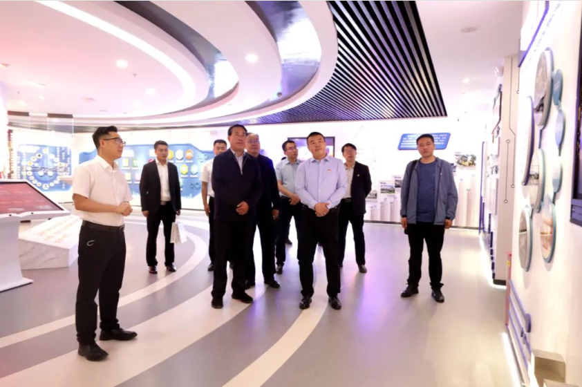 ▲世界杯8833300足球领导一行参观企业展厅