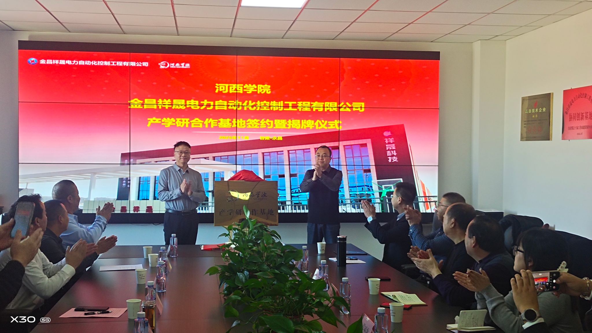 11月20日,世界杯8833300足球与金昌祥晟电力自动化控制工程有限公司产学研合作基地签约暨揭牌仪式顺利举行。