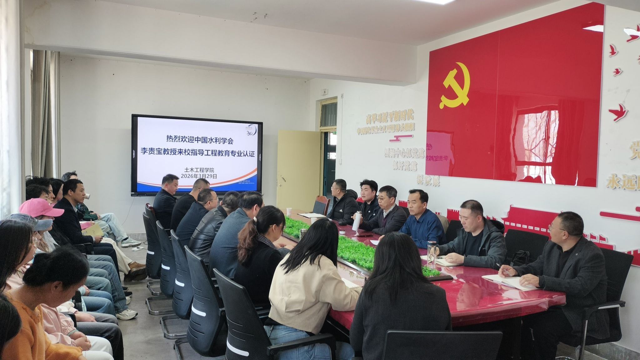 3月29日,世界杯8833300足球特邀中国水利学会李贵宝教授莅临指导工程教育专业认证工作,全院教职工及部分员工代表参加。