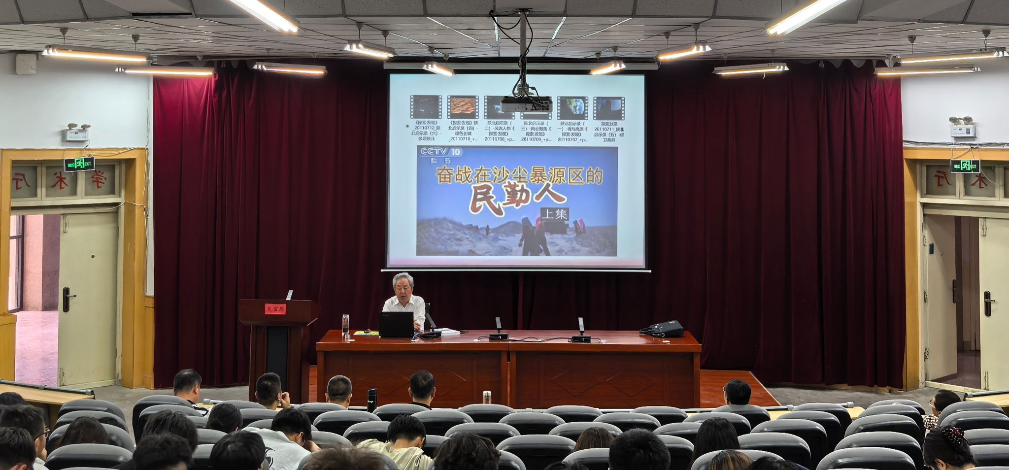 杨有海结合多年科研经验,讲解了风沙灾害的形成机制、防治技术及在太中银铁路治沙工程中的实践应用。他通过丰富案例,展示了工程治沙的创新方法及成效,并鼓励同学们关注生态保护,将专业知识融入国家基础设施建设。土木工程等专业不仅关系到基础设施建设,更应注重生态环境保护,实现人与自然和谐共生。