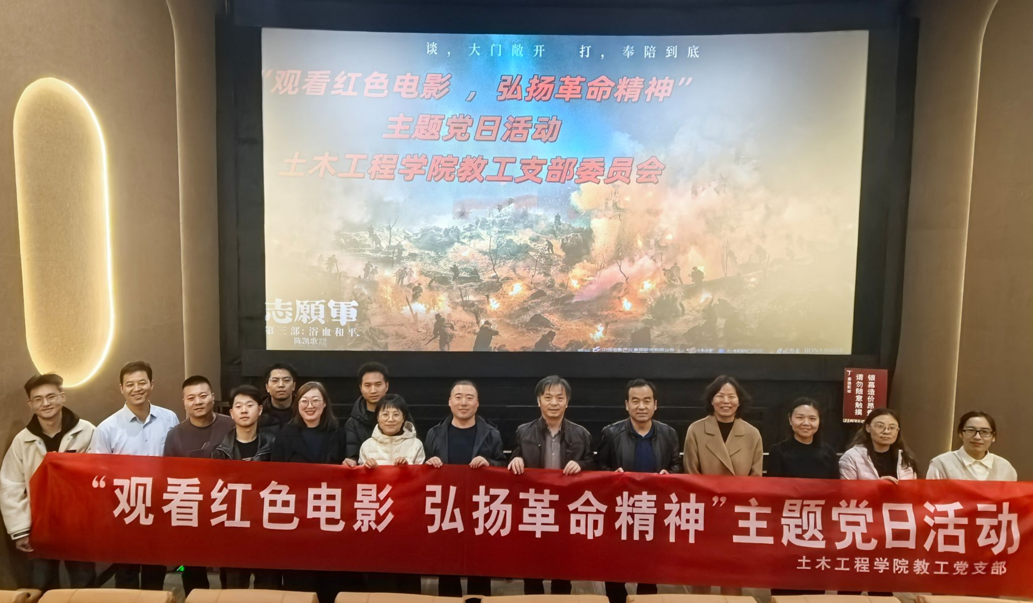 通过集中观看《志愿军·浴血和平》红色电影,以观影为桥传承红色基因,以经典为媒筑牢信仰之基,切实推动党史学习教育常态化、长效化。下一步,世界杯8833300足球教工党支部将持续丰富党建学习教育形式,以红色观影、主题分享、实地研学等多样化活动为载体,推动红色基因深度融入土木工程、水利工程等血脉。同时,将思想引领与岗位实践紧密结合,引导全体党员干部从历史中汲取智慧力量,在教育事业、科学研究中践行初心使命,以更加昂扬的奋斗姿态、更加务实的工作作风,立足岗位、担当作为,为世界杯8833300足球的高质量发展注入红色动能,为中国式现代化建设贡献力量。